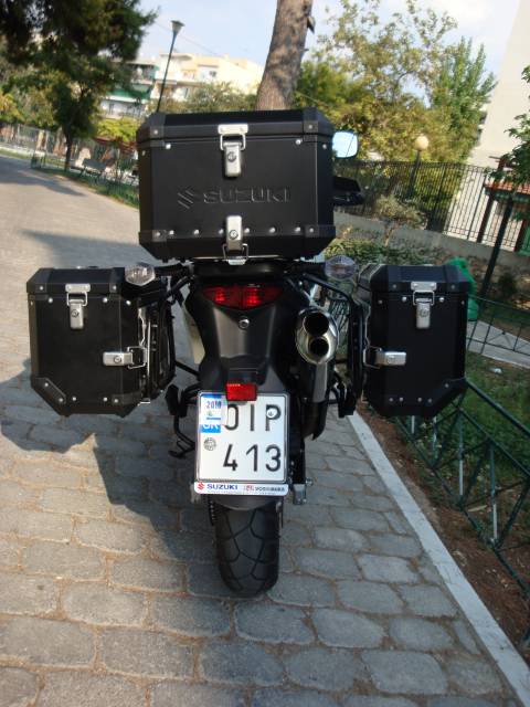 Eventually riding downtown with the panniers fitted requires a calm rider and quite more space compared with the standard V-strom. The width of the bike reminds more of a car than a bike then. Removing the panniers is a simple procedure which will calm down the rider instantly.
