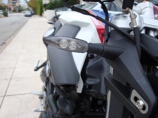 Ενδιαφέρουσες λεπτομέρειες τα φλας τύπου Led, η αλυσίδα που βρίσκεται στη δεξιά μεριά του ψαλιδιού, η τάπα βενζίνης στην ουρά αφού το ρεζερβουάρ είναι κάτω από τη σέλα του αναβάτη. Η ασυμμετρία των οργάνων ακολουθεί την αντίστοιχη των φώτων. Η μοτοσυκλέτα διαθέτει αμορτισέρ τιμονιού.