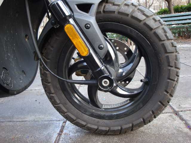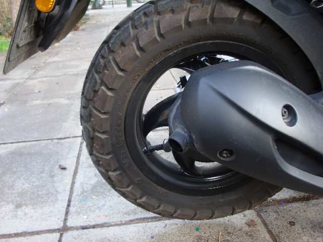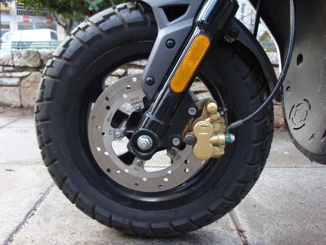 Τα ελαστικά μάρκας Vee rubber έχουν διάσταση 120-80/12 μπροστά και 130-80-12 πίσω.