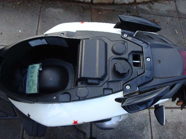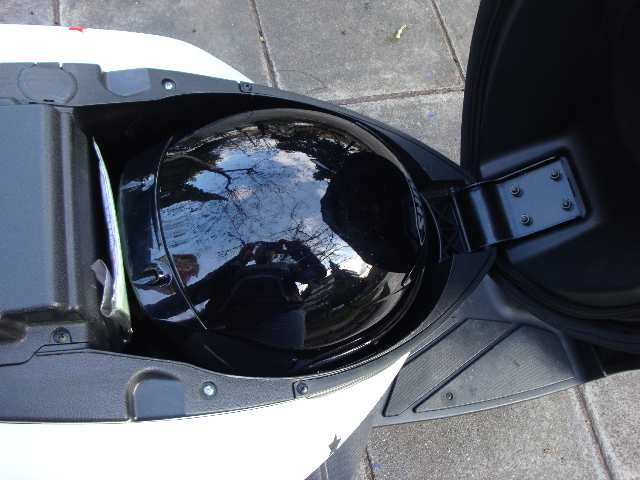 Κάτω από τη σέλα χωράει ακριβώς ένα full face κράνος κανονικού μεγέθους. Το πάτωμα είναι επίπεδο.