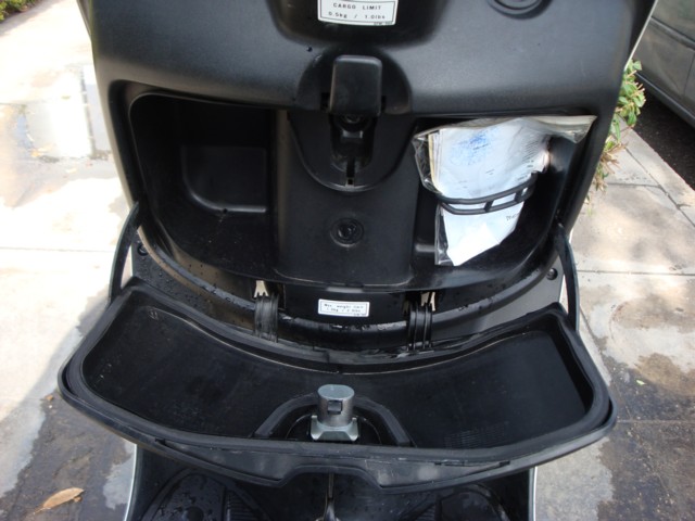 Άλλα σχόλια: Κάτω από τη σέλα ο αποθηκευτικός χώρος είναι απρόσμενα μεγάλος για τις διαστάσεις του σκούτερ. Είναι λίγο μικρότερος από 2 full face κράνη, χωράει 2 jet κράνη! Είναι επίπεδος κι επενδυμένος στη βάση του με μοκέτα.