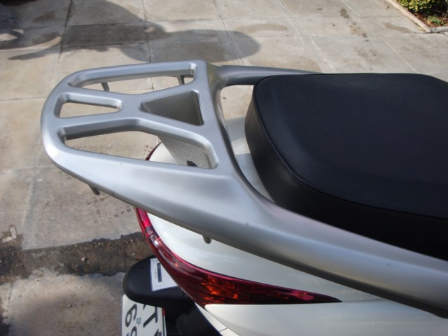 Το πάτωμα είναι κι αυτό επίπεδο, φυσικά υπάρχει και γάντζος για τα ψώνια. Το ντουλαπάκι μπροστά στην ποδιά είναι πολύ πρακτικό. Η σχάρα αλουμινίου εκτός από όμορφη φαίνεται κι αρκετά στιβαρή ενώ παρέχει και χειρολαβές στον αναβάτη. Δεν υπάρχει πλαϊνό σταντ, ωστόσο η βάση του είναι εκεί. Το σκούτερ είναι εξοπλισμένο με αντικλεπτική κλειδαριά.