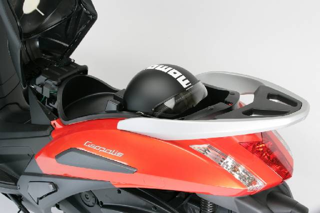 Η σχάρα χρησιμεύει κι ως χειρολαβή για τον συνεπιβάτη. Yπάρχει και μονό σταντ. Οι λαμπτήρες μπροστά είναι αλογόνου, παρέχεται πρίζα 12 V στο ντουλαπάκι της ποδιάς. Το ρεζερβουάρ καυσίμου έχει μετακομίσει μπροστά, κάτω από τα πόδια του οδηγού για καλύτερη κατανομή του βάρους.