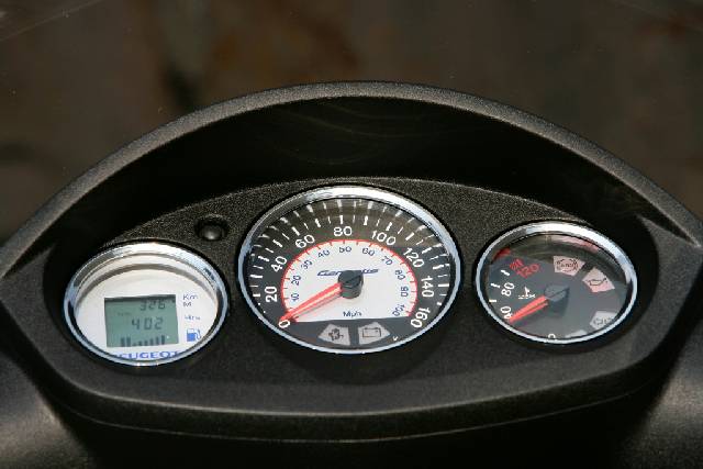 Τα μαρσπιέ του συνεπιβάτη προεξέχουν πολύ προς τα έξω. H ένδειξη της στάθμης καυσίμου θα μπορούσε να είναι πιο αξιόπιστη. Το πάτωμα του σκούτερ δεν είναι επίπεδο.