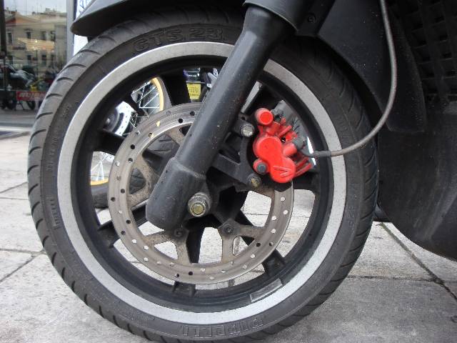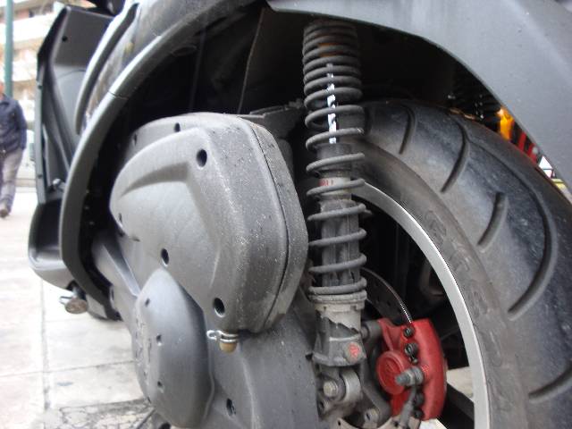 Στο δρόμο: Οι αναρτήσεις είναι σχετικά σφικτές. Η ρύθμιση τους ταιριάζει με τον σπορ χαρακτήρα του σκούτερ και το στιβαρό πλαίσιο. Το πιρούνι μπροστά έχει διάμετρο 37 χιλιοστά (!), ενώ τα δύο αμορτισέρ πίσω είναι Paioli, όπου ρυθμίζονται ως προς την προφόρτιση του ελατηρίου σε τέσσερις θέσεις.