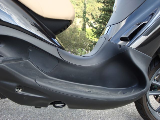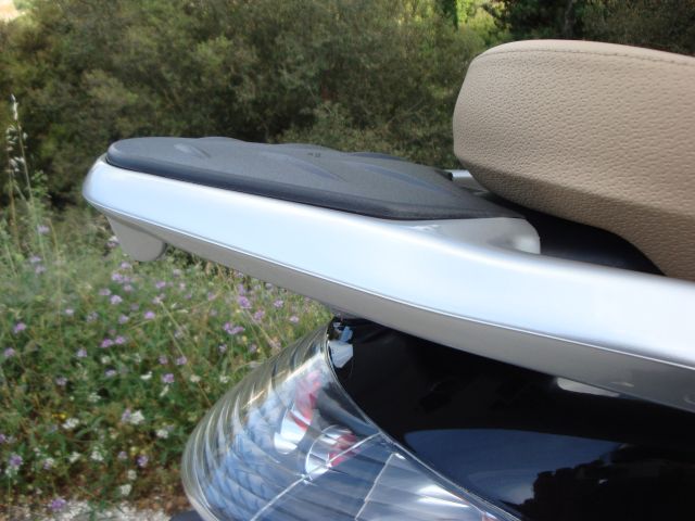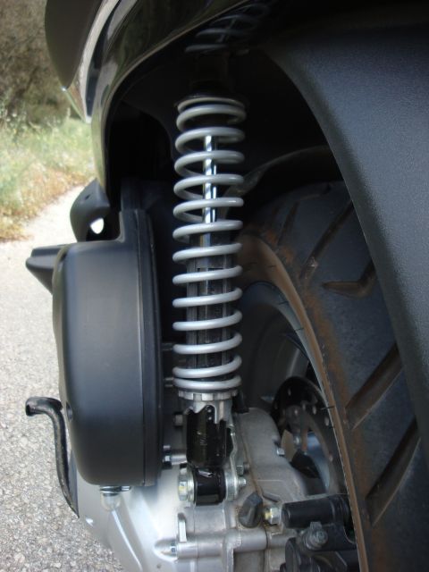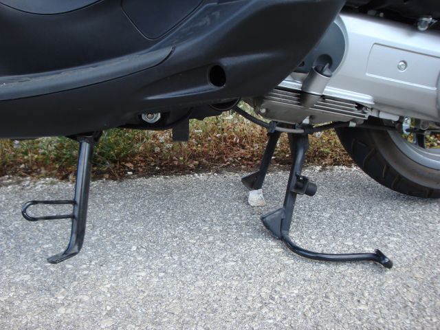 Άλλα σχόλια: Το πάτωμα δεν είναι επίπεδο. Το στήσιμο και κατέβασμα του σκούτερ στο διπλό σταντ είναι πραγματικά πολύ εύκολο χάρις στον καλό μοχλό που παρέχει το κεντρικό σταντ και τη στιβαρή χειρολαβή του συνεπιβάτη. Για να επιτευχθεί αυτό, το κεντρικό σταντ έχει μετακινηθεί στο πίσω μέρος του σκούτερ.