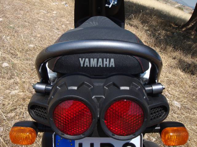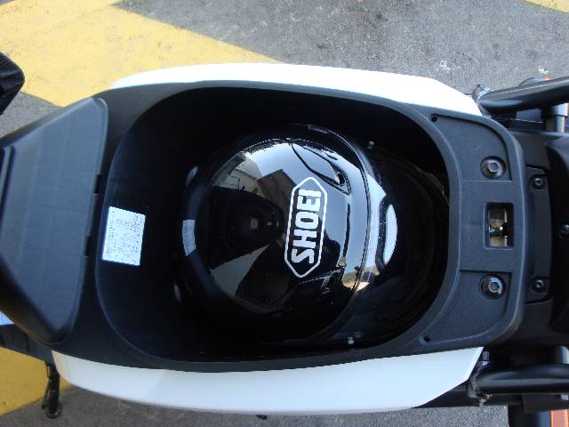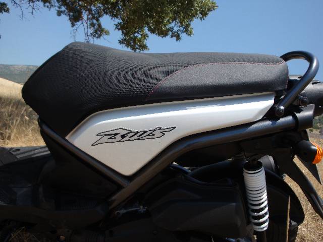 Η κόκκινη ραφή της σέλας, το αντιολισθητικό της κάλυμμα και το ότι ανασηκώνεται μόνη της με το άνοιγμα, χαρίζουν πολλούς πόντους στην ούτως ή άλλως πολύ καλή ποιότητα κατασκευής του BW’s. Κάτω από τη σέλα χωράει ίσα - ίσα ένα full face κράνος Shoei XR1000. Η δαγκάνα του μπροστινού φρένου είναι κόκκινη για κάποιο λόγο. Ο σωληνωτός σκελετός είναι εκτεθειμένος στο πίσω μέρος του σκούτερ.
