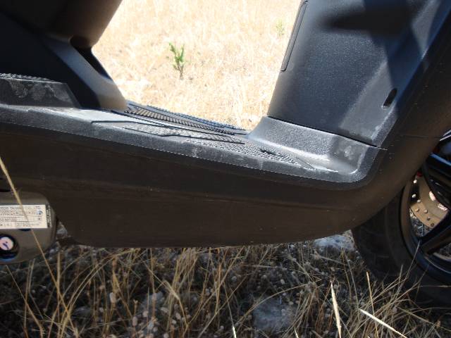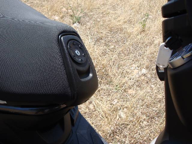 Η τάπα βενζίνης βρίσκεται έξω από τη σέλα στο μπροστινό της μέρος. Ο αναβάτης δεν θα νοιώσει βολικά αν μείνει πάνω στη σέλα κατά τη διάρκεια του ανεφοδιασμού. Δεν υπάρχει ιδιαίτερο πλεονέκτημα στο ότι η τάπα της βενζίνης είναι έξω από τη σέλα, ο αναβάτης θα κατέβει και πάλι από το σκούτερ, δεν θα ανοίξει τη σέλα όμως. Από την άλλη παρέχεται αποθηκευτικός χώρος.