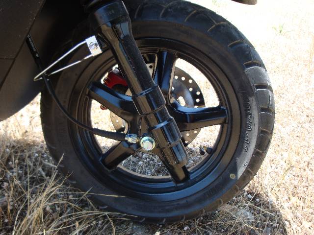Τα ελαστικά είναι μάρκας Kenda, με διαστάσεις 120/70-12 μπροστά και 130/70-12 πίσω. Δεν θεωρούνται καλή επιλογή για το σκούτερ σε δρόμους με μέτριο-μειωμένο συντελεστή πρόσφυσης. Περιέχουν πολύ νάιλον. Πλεονέκτημα του σκούτερ οι πλάγιες βαλβίδες ελαστικών.