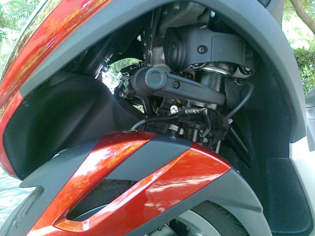 Στο δεξί γκριπ υπάρχει διακόπτης για το ηλεκτρουδραυλικό σύστημα κλειδώματος της ανάρτησης όπου αριστερά κλειδώνει το σκούτερ και δεξιά το ξεκλειδώνει ως προς το να πάρει κλίση προς κάποια κατεύθυνση. Αυτό είναι χρήσιμο σε περίπτωση παρκαρίσματος, σε ολιγόλεπτη στάση, στα φανάρια αν το επιθυμεί ο οδηγός κτλ..
