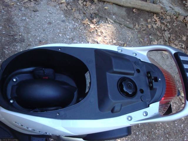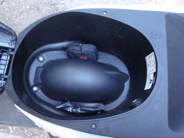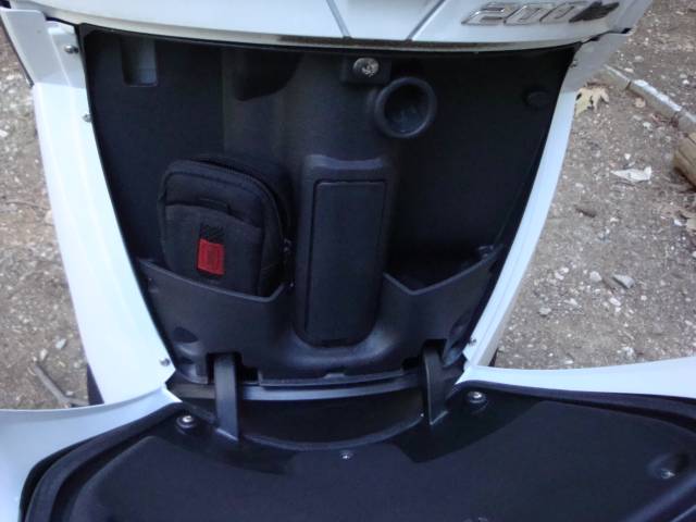 Άλλα σχόλια: Το πάτωμα στα πόδια του οδηγού είναι επίπεδο. To ντουλαπάκι για τα γάντια μπροστά στην ποδιά χωρίζεται σε δυο μικρούς χώρους δεξιά κι αριστερά που ενδεικτικά χωρά μια φωτογραφική μηχανή τσέπης σε κάθε τέτοιο χώρο. Κάτω από τη σέλα υπάρχει χώρος για ένα ποδηλατικό ή ένα πολύ μικρό jet κράνος. Στο χώρο αυτό υπάρχει και πρίζα 12V. Η σχάρα είναι εκεί έτοιμη για να δεχτεί ένα top case αν χρειάζεται στον οδηγό μεγαλύτερος αποθηκευτικός χώρος.