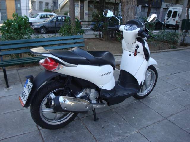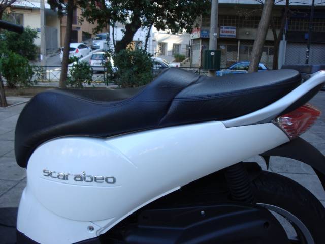 Τo Scarabeo είναι ένα σκούτερ διαστάσεων 125-150 κ. εκ. με μεγαλωμένο κινητήρα στα 200 κ. εκ.. Μια άλλη λύση που δίνουν οι κατασκευαστές είναι να μικρύνουν ένα σκούτερ των 300 κ. εκ. στα 200 κ. εκ., συνήθως με μικρές μόνο αλλαγές στον κινητήρα. Οδηγικά τότε το αποτέλεσμα είναι πολύ διαφορετικό από αυτό του Scarabeo.
