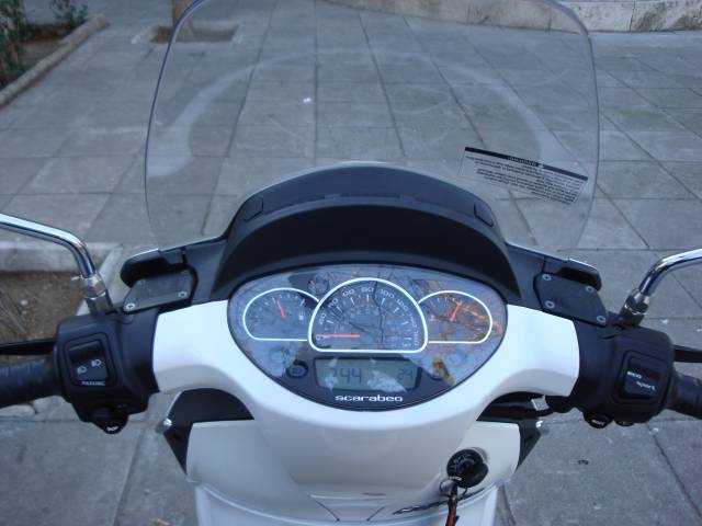 Ωστόσο πάνω από τα 120 χ.α.ω. το Scarabeo γίνεται νευρικό, αφού παρατηρούνται ταλαντώσεις στην ευθεία. Αν ο αναβάτης κάθεται μπροστά στο σκούτερ, υπάρχουν στιγμές που θα κλείσει και το γκάζι σε αυτά τα χιλιόμετρα. Η κατάσταση βελτιώνεται αν κάθεται προς τα πίσω, χωρίς να αλλάζει όμως σημαντικά η κατάσταση.