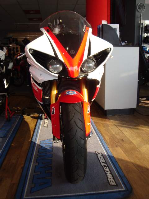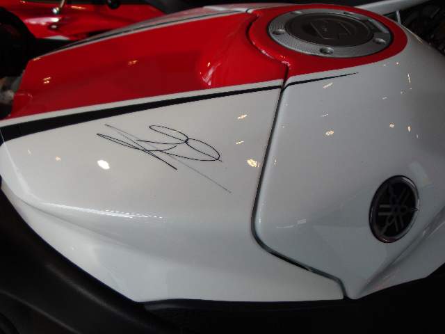 Στο χώρο του καταστήματος βρήκαμε τη συλλεκτική Yamaha R1 2011 με τις υπογραφές των Jorge Lorenzo & Ben Spies.