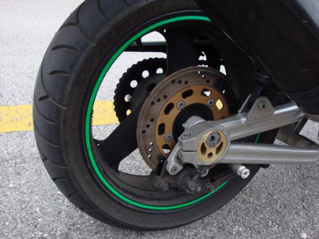 Το πίσω είναι πολύ δυνατό, γραμμικό. Η δύναμη του είναι περισσότερη απ’ότι χρειάζεται η μοτοσυκλέτα. Έτσι σε περίπτωση ξαφνικών φρένων σε δρόμο χαμηλής-μέτριας πρόσφυσης, ο οδηγός θα απασχολείται περισσότερο με το να ελέγξει το πίσω μέρος της μοτοσυκλέτας, παρά με το τι γίνεται μπροστά του.