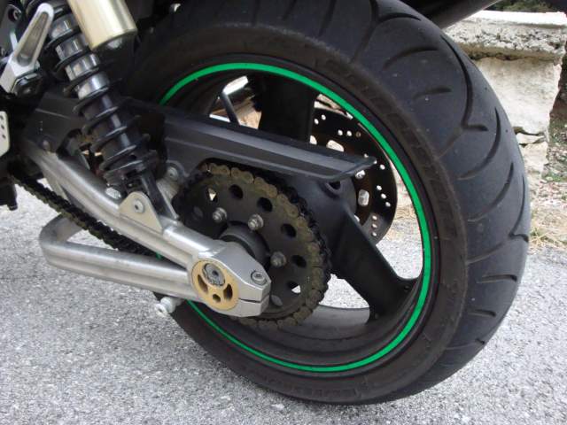 Τα ελαστικά είναι τα Bridgestone BT-21 με διαστάσεις 120/70-17 μπροστά και 180/55-17 πίσω. Είναι σχετικά καλή λύση για δρόμους με καλή άσφαλτο και κανονικό ρυθμό οδήγησης ή ταξίδι. Σε μέτρια οδοστρώματα ή σε πιο γρήγορο ρυθμό, χρειάζονται αντικατάσταση με κάτι μαλακότερο. Τόσο απλά.