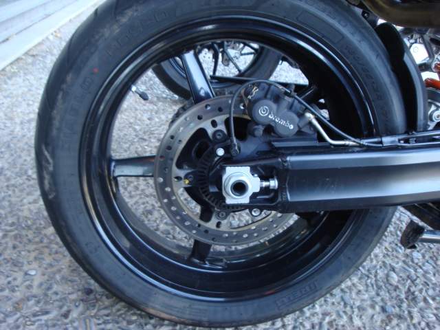 Το πίσω δισκόφρενο 240 χιλ. με δαγκάνα 2 εμβόλων είναι δυνατό και αξιοποιήσιμο αν και με σχετικά καλή αίσθηση. O συνδυασμός των δύο φρένων παρέχει εξαιρετική επιβραδυντική δύναμη. Οι δαγκάνες είναι Brembo. Η επέμβαση του ABS παράγει μικρή δόνηση στα χειριστήρια αλλά η αίσθηση τότε μειώνεται πολύ. Συμπερασματικά αυτά τα φρένα τονίζουν ακόμη περισσότερο τον χαρακτήρα της μοτοσυκλέτας. Ο χαρακτήρας αυτού του ABS ταιριάζει απόλυτα με το smT.
