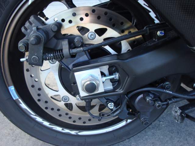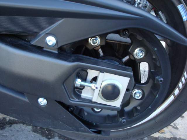 Στο σκούτερ της δοκιμής είχε τοποθετηθεί σύστημα Push and Block στο κεντρικό σταντ. Πατώντας το κουμπί, κλειδώνει το κεντρικό σταντ στην έκταση του, το σκούτερ δεν κατεβαίνει από εκεί για να οδηγηθεί.