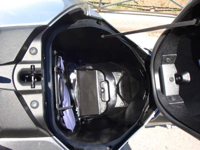 Σχόλια: Ο χώρος αποθήκευσης εκεί που θα βρίσκονταν κανονικά το ντεπόζιτο, χωρά ένα full face κράνος αν μπει με συγκεκριμένο τρόπο, αφήνοντας κι ελάχιστο χώρο ακόμη, ενδεικτικά για μια-δυο μπλούζες. Έχει χωρητικότητα 21 λίτρων. Έτσι δεν χρειάζεται top case για τις καθημερινές ανάγκες ενός οδηγού.