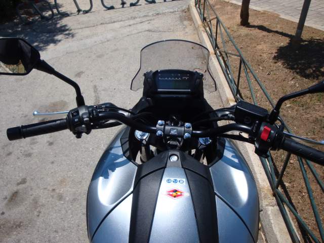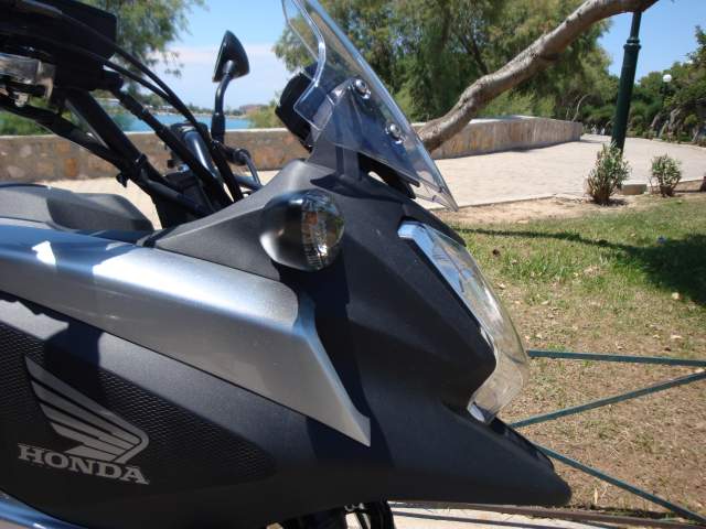 Από τη θέση οδήγησης η μικρή οθόνη LCD και η μικρή ζελατίνα, φαίνονται λίγο αταίριαστες σε σχέση με το σχετικά πλατύ αποθηκευτικό χώρο, επειδή λειτουργούν οπτικά σαν προέκταση του. Τα φώτα είναι πολύ καλά. Σύμφωνα με την τελευταία συνήθεια της Honda και Bmw, στο αριστερό γκριπ ο διακόπτης των φλας και της κόρνας έχουν αλλάξει θέση μεταξύ τους, κάτι που θέλεις συνήθεια από τον οδηγό ιδίως αν χειρίζεται ταυτόχρονα κι άλλες μοτοσυκλέτες.