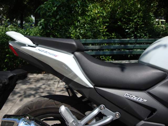 Θέση οδήγησης: Το ύψος της σέλας είναι χαμηλό, 790 χιλ., παρέχοντας σίγουρο πάτημα ακόμη και σε μικρόσωμους αναβάτες. Ο συνοδηγός κάθεται αρκετά ψηλότερα από τον οδηγό, το μέρος της σέλας που του αναλογεί είναι μικρό και σκληρό, θυμίζοντας λίγο μοτοσυκλέτα supersport 600 κ. εκ. κι αυτό δεν είναι πλεονέκτημα!