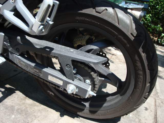 Τα ελαστικά πρώτης τοποθέτησης είναι τα Maxxis promaxx street με διαστάσεις 110/70-17 μπροστά και 140/70-17 πίσω. Θεωρούνται μια μέτρια επιλογή, ιδίως σε δρόμους χαμηλής πρόσφυσης.
