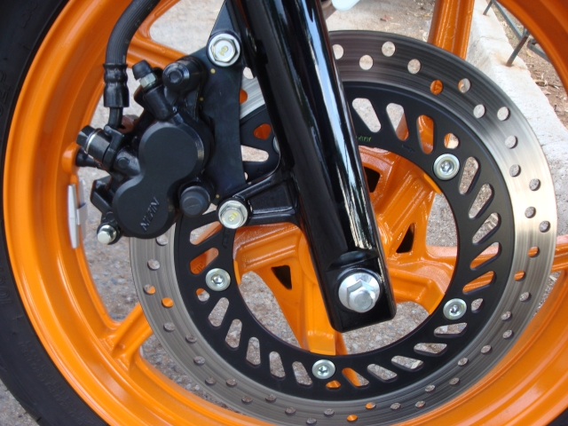 Τα φρένα αποτελούνται από δίσκο 276 χιλ. μπροστά με διπίστονη δαγκάνα και δίσκο 220 χιλ. πίσω με δαγκάνα μονού εμβόλου. Είναι γραμμικά, σχετικά δυνατά, με σχετικά καλή πληροφόρηση. Ταιριάζουν πολύ καλά στο χαρακτήρα της μοτοσυκλέτας, στις ηλικίες-εμπειρία αναβάτη που απευθύνεται αλλά και στα οδοστρώματα με μέτριο συντελεστή τριβής που μπορεί να οδηγηθεί.