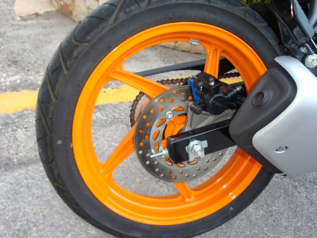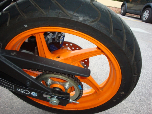 Τα ελαστικά πρώτης τοποθέτησης είναι τα IRC Roadrunner με διαστάσεις 100/80-17 μπροστά και 130/70-17 πίσω. Το μόνο τους πλεονέκτημα ειδικά σε δρόμους χαμηλής πρόσφυσης είναι το όνομα τους κι αυτό στους φίλους των καρτούν.