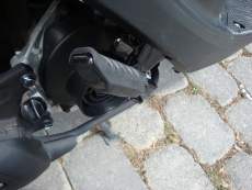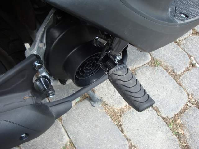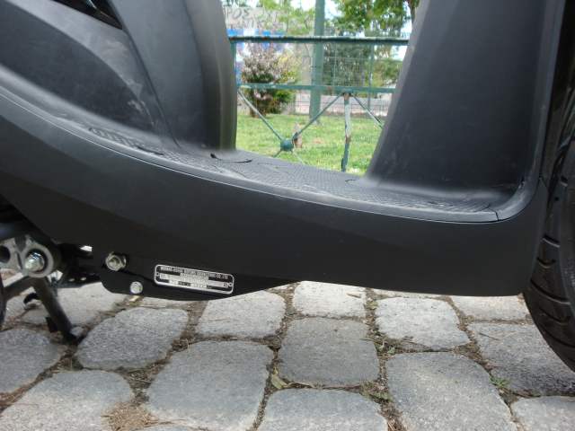 Το πάτωμα είναι επίπεδο και λίγο πιο στενό από το ιδανικό εκεί που πατάει ο οδηγός. Μάλιστα η ποδιά έχει δύο εσοχές εκεί που πατάει ο αναβάτης, όπου φιλοξενεί όμορφα τα πόδια του οδηγού. Τα κράνη οδηγού-συνοδηγού μπορούν να ασφαλιστούν.