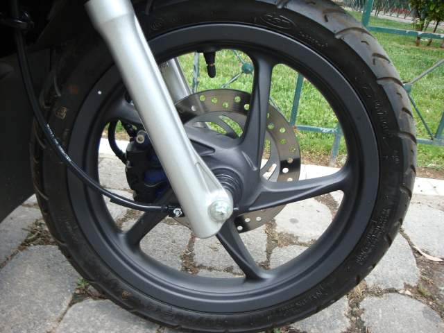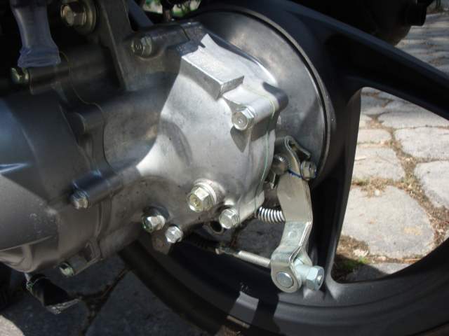 Το ταμπούρο πίσω είναι γραμμικό, παρέχει απλά μέτρια δύναμη και σχετικά καλή αίσθηση. Σε καλή άσφαλτο δεν θα μπορέσει να μπλοκάρει τον πίσω τροχό με τον αναβάτη μόνο. Σε μέτρια ή γλιστερή άσφαλτο είναι ιδανικό όμως. Τελικά ο συνδυασμός των δύο φρένων παρέχει καλή επιβραδυντική δύναμη σε δρόμους με καλή πρόσφυση και πλησιάζει στο ιδανικό (!) σε δρόμους με μέτρια πρόσφυση.