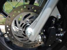 Το μπροστινό είναι δυνατό, παρέχει δυνατό αρχικό δάγκωμα με σχετικά καλή αίσθηση. Σε καλή άσφαλτο παρέχει άμεσο φρενάρισμα, σε μέτρια άσφαλτο είναι εξαιρετικό. Θα απαιτήσει λίγη προσοχή από τον οδηγό σε φρενάρισμα πανικού.