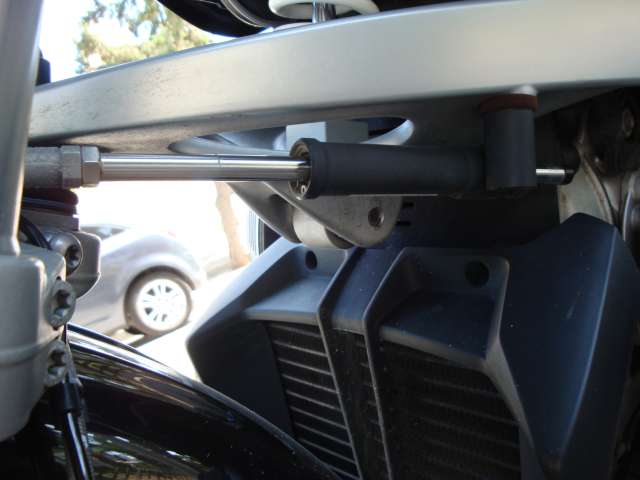 Υπάρχει και μη ρυθμιζόμενο αμορτισέρ τιμονιού που δεν φάνηκε να χρειάζεται κατά τη διάρκεια της δοκιμής. Το ψαλίδι είναι μονόμπρατσο, φέρει και τον άξονα. Η μοτοσυκλέτα της δοκιμής ήταν εξοπλισμένη με το ηλεκτρονικό σύστημα ρύθμισης των αναρτήσεων ESA, ανάλογα με το αν υπάρχει συνεπιβάτης και το ρυθμό οδήγησης, comfort, normal, sport.