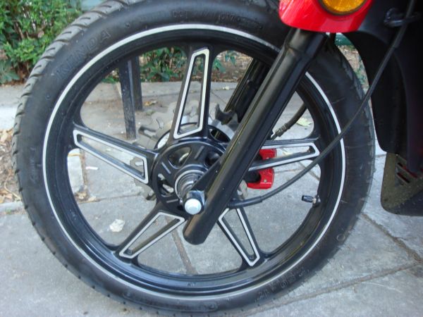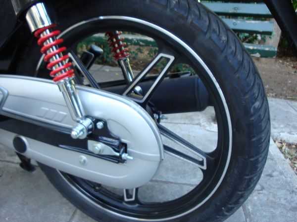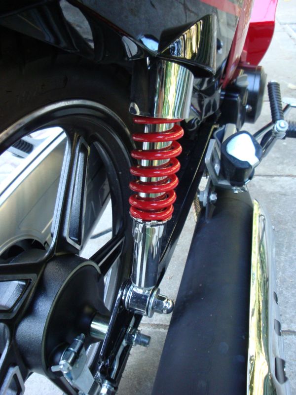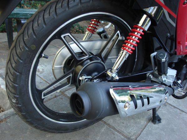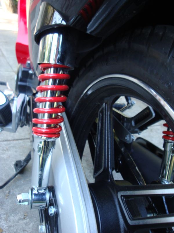 Στο δρόμο: Χρησιμοποιούνται διπλά αμορτισέρ πίσω. Ρυθμίζεται η προφόρτιση των ελατηρίων στα αμορτισέρ σε πέντε θέσεις. Οι αναρτήσεις είναι πολύ μαλακές στην εργοστασιακή πιο μαλακή ρύθμιση τους. Τα ελαστικά πρώτης τοποθέτησης είναι τα Kenda με διαστάσεις 2.5-17 μπροστά και 2.75-17 πίσω. Θεωρούνται μια μέτρια επιλογή. Οι ζάντες είναι ελαφρού κράματος.