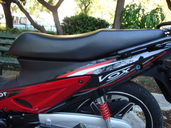 Ο συνεπιβάτης τοποθετείται ελάχιστα ψηλότερα από τον οδηγό, η σέλα που του αναλογεί είναι σχετικά στενή, με τη σωστή σκληρότητα, ενώ το ρόλο των χειρολαβών παίζει η σχάρα παρέχοντας σχετικά στενή λαβή. Οι διαστάσεις του Vox είναι κανονικές για παπί. Το βάρος είναι πάρα πολύ χαμηλό, 96 ονομαστικά κιλά γεμάτο.