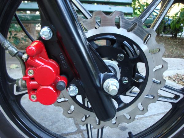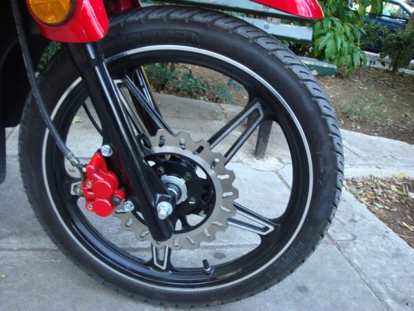 Τα φρένα αποτελούνται από δισκόφρενο-μαργαρίτα 220 χιλ. μπροστά με διπίστονη δαγκάνα ενώ πίσω υπάρχει ταμπούρο 110 χιλ.