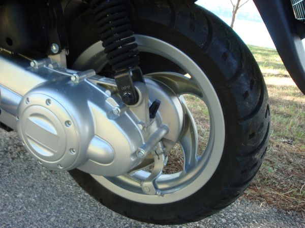 Στο δρόμο: Οι αναρτήσεις έχουν μαλακή αίσθηση, μπροστά χρησιμοποιείται πιρούνι 32 χιλ., πίσω υπάρχει μονό αμορτισέρ, ενώ το ψαλίδι είναι μονόμπρατσο για γρήγορη αλλαγή ελαστικών στους αγώνες endurance! Αυτό υποτίθεται ότι ήταν αστείο! Τα ελαστικά που χρησιμοποιούνται έχουν διαστάσεις 120/70-12 μπροστά και πίσω και είναι μάρκας Duro.
