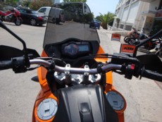 Στο δρόμο : Με βάση τα παραπάνω στην πόλη θα ικανοποιήσει με την ευελιξία του, το βάρος θα απασχολήσει μόνο στους επί τόπου ελιγμούς. Ο κινητήρας επειδή είναι 1000 κυβικά, θα ζεσταίνεται το καλοκαίρι στο Ελληνικό αστικό περιβάλλον. Το Adventure είναι πλέον αρκετά πολιτισμένο, κρύβει επιμελώς τις αγωνιστικές του ρίζες, έχει πιο ήπια συμπεριφορά από αυτή που θα περίμενε ο αναβάτης από ένα KTM. Βέβαια δεν αισθάνεται και πολύ άνετα όταν ο αναβάτης θελήσει να κρατήσει πολύ αργούς ρυθμούς κίνησης στην πόλη. Oι διηθήσεις θα είναι άνετες αφού το τιμόνι περνά αρκετά πιο πάνω από τους καθρέπτες των αυτοκινήτων. Οι όποιες κακοτεχνίες των δρόμων αποσβένονται πολύ ικανοποιητικά.
