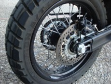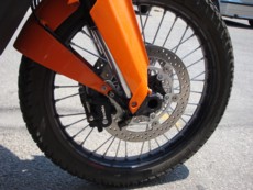 Σε πραγματικά υψηλό ρυθμό οδήγησης, ο μπροστινός τροχός των 21 ιντσών με τα ελαστικά πρώτης τοποθέτησης Pirelli Scorpion με διαστάσεις 90-90-21 μπροστά και 150-70-18 πίσω, θα αρχίσουν σταδιακά να θέτουν τα όρια: O οδηγός αισθάνεται τότε μικρότερη πληροφόρηση από το μπροστινό, πρέπει να ρίξει λίγο βάρος μπροστά. Και πάλι ο ρυθμός θα αρχίσει να πλησιάζει τον αντίστοιχο ενός supermoto. Ωστόσο αμέσως μετά, τα ελαστικά δεν θα παρέχουν πλέον την πληροφόρηση που απαιτείται για τη διατήρηση τέτοιου ρυθμού.