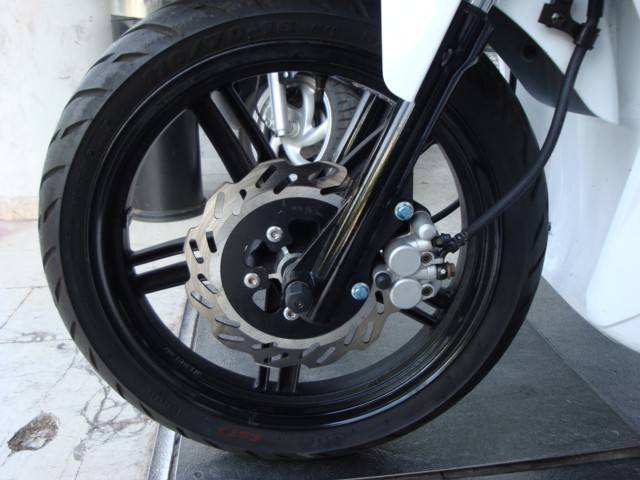 Στο δρόμο: H μπροστινή ανάρτηση, τηλεσκοπικό πιρούνι, είναι σχετικά σφικτή, ενώ τα δύο αμορτισέρ πίσω, έχουν μέτρια σκληρότητα. Οι τροχοί έχουν διάσταση 110-70-16 μπροστά και πίσω.