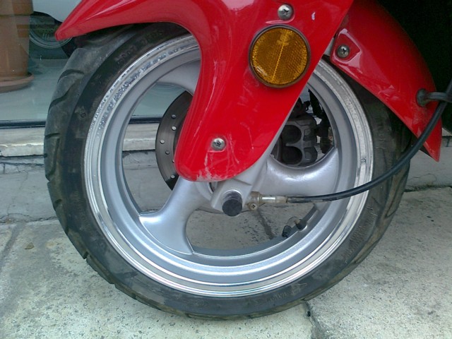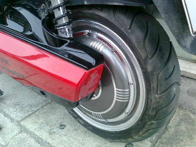 Στο δρόμο: Η διάσταση και των δύο τροχών είναι 130-60-13. Αυτό που φαίνεται σαν φουσκωμένη ζάντα του πίσω τροχού είναι ουσιαστικά ο κινητήρας. Όταν ενεργοποιείται το φρένο, δεν λειτουργεί ο κινητήρας.