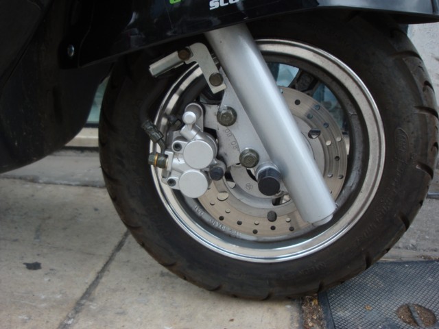 Τα φρένα είναι δισκόφρενα μπροστά και πίσω, με πλαστικά σωληνάκια. Το μπροστινό είναι πολύ καλό, σε καλή άσφαλτο θα μπλοκάρει σχετικά δύσκολα αφού έχει όση ακριβώς δύναμη χρειάζεται. Σε μέτρια άσφαλτο θα μπλοκάρει πιο εύκολα αλλά ελεγχόμενα.