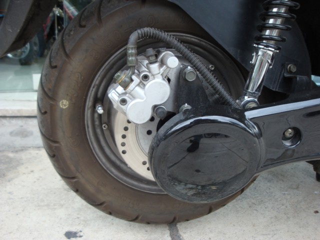 Το πίσω είναι δυνατό, θα μπλοκάρει εύκολα τον τροχό σε γυαλισμένη άσφαλτο. Σε δρόμο με υψηλό συντελεστή τριβής, θα μπλοκάρει τον τροχό σχετικά εύκολα. Ο συνδυασμός μπροστινού και πίσω φρένου έχει σαν αποτέλεσμα εξαιρετικό φρενάρισμα ιδίως σε δρόμους με υψηλό συντελεστή τριβής.