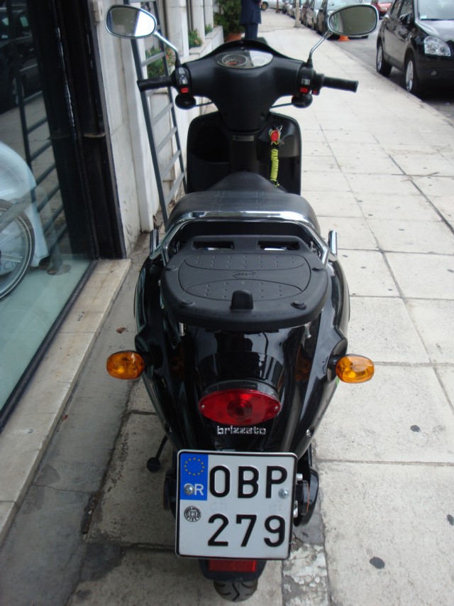 Άλλα σχόλια: Η σχεδίαση του σκούτερ παραπέμπει σε κλασσική - ιταλική. Tα φώτα πορείας ενεργοποιούνται με διακόπτη. Υπάρχει ένα κίτρινο μπουτόν στο δεξί γκριπ που στο μοντέλο e-City ενεργοποιεί την κόρνα, στο μοντέλο brizzato δεν κάνει τίποτα. Κάτω από τη σέλα υπάρχει μεγαλύτερος χώρος από ένα ανοικτό κράνος, πχ μια σακούλα ψώνια. Ένα κανονικό κράνος δεν θα χωρέσει. Το πάτωμα για τα πόδια του οδηγού είναι επίπεδο. Στην τιμή περιλαμβάνεται γάντζος για τα ψώνια, πλάγιο σταντ, πλάγιες βαλβίδες ελαστικών, ανοικτό τσεπάκι στην ποδιά για μικροπράγματα και σχάρα.