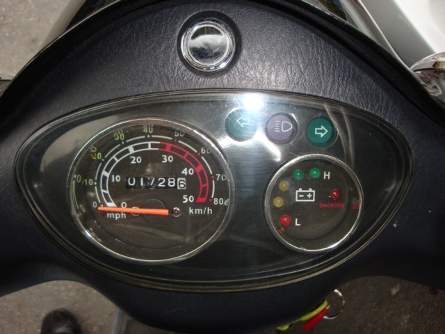 Διαδικασία εκκίνησης: O διακόπτης είναι στη θέση On, ο αναβάτης δεν ακούει κάποιο ήχο από το σκούτερ, ωστόσο αν περιστρέψει απότομα το δεξί γκριπ, το σκούτερ έχει αρκετή ροπή να …προχωρήσει γρήγορα μπροστά. Επιλέγοντας τη λειτουργία high, τα 10 χ.α.ω. έρχονται αμέσως, τα 30 χ.α.ω. σχετικά γρήγορα, τα 50 χ.α.ω. ικανοποιητικά, τελική ταχύτητα 75 χ.α.ω., μετά από αρκετή ώρα.