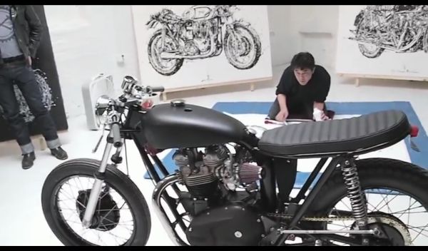 O Makoto Endo ζωγραφίζει κάθε μοτοσυκλέτα με  …chopsticks! Αυτή τη φορά είναι μια  Triumph café racer στην εκδήλωση Live Painting του 9ου τέυχους του περιοδικού  Iron & Air Motorcycle Magazine.
