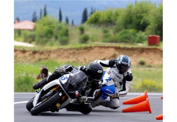 Πίσω του δόθηκε η μάχη που κράτησε μέχρι και τον τελευταίο γύρο, μεταξύ Βαγγέλη Καρακατσάνη (Honda CBR600RR) και Άλεξ Παπαγεωργίου (Yamaha R6), που φέτος προετοιμάζεται με την ομάδα του Μπούστα και έχει πάλι την υποστήριξη της ΕΚΟ.