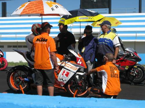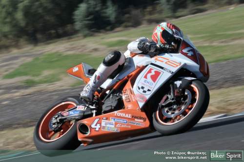 Θεωρητικά ναι, εντάξει το βλέπουμε κι από την τιμή, άλλο είναι το ένα άλλο το άλλο. Το R κάνει 30000 ενώ το Ktm 23000. Δεν έχω τέτοια θέματα, με βόλεψε και το μηχανάκι, ένα μηχανάκι που δεν είχε κυκλοφορήσει ποτέ, ενώ η τιμή που έχει αυτή τη στιγμή το Ktm R με 17000 ευρώ, δεν υπάρχει μηχανάκι τέτοιο πχ το να πάρεις κάποιος ένα άλλο με 15000, το R έχει πολύ περισσότερα πράγματα πάνω σε θέμα αναρτήσεων, φρένων, δεν νομίζω ότι υπάρχει πολιτικό μηχανάκι που έχει πάνω ζάντες Marchesini. Εγώ έκανα το ρίσκο μου, με βοήθησε και η εταιρεία η Ktm, και πιστεύω ότι έχουμε φτάσει σε ένα πολύ καλό επίπεδο. Το να έχουμε μια 4η θέση στην πρώτη χρονιά στο πρωτάθλημα ενώ δεν έχει ξανατρέξει το μηχανάκι κι εγώ τραυματισμένος, δεν είχα κάνει ακόμη εγχείρηση, από τα 125 στα 1000, πιστεύω ότι ήταν καλή θέση. Φέτος όπως είναι οι καταστάσεις έχουμε φτάσει να κυνηγάμε ένα πρωτάθλημα, με ένα μηχανάκι σαφώς υποδεέστερο απΆ όλα τα άλλα όπως το θεωρούν όλοι. Εγώ δεν το βλέπω έτσι, δηλαδή τρέχω δύο χρονιές σχεδόν και δεν μου έχει βγάλει το μηχανάκι απολύτως τίποτα. Λάδια φίλτρο μόνο αλλάζουμε. Παλιότερα τα ktm είχαν βγάλει κάποιο όνομα, δεν μπορούμε να συγκρίνουμε ένα Δούκα με ένα ΧΤ. Ο Δούκας είναι ημιαγωνιστικό μηχανάκι και θέλει την περιποίηση του, θέλει τα λάδια του σωστά, τα σέρβις του σωστά, ξέρω Δούκα χωρίς σέρβις που έχει βγάλει 60000 και δεν ζήτησε ποτέ τίποτα. Και πάλι μου αρέσει το ρίσκο, θα έτρεχα μηχανή που δεν έχουν τρέξει άλλοι.