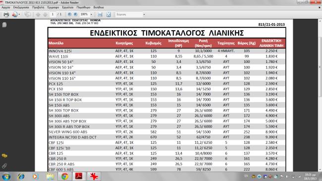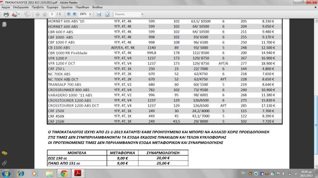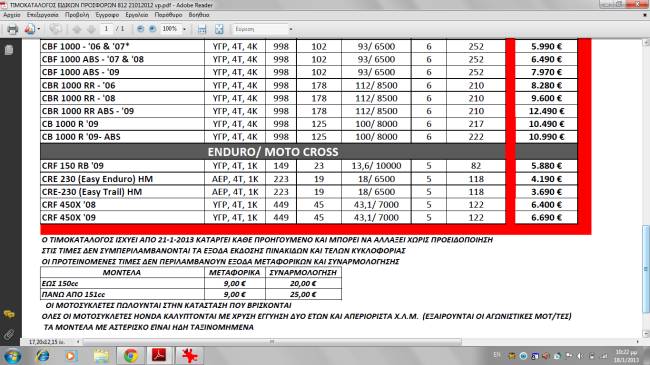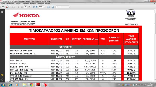 Αλλαγές στις τιμές της Honda, προσφορές σε στοκ Αλλαγές στις τιμές της Honda - προσφορές σε στοκ, από Δευτέρα 21/1/2013. Η τιμή του CB 1100 ABS είναι 12500 €.