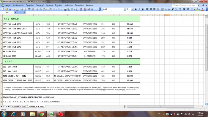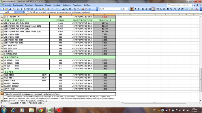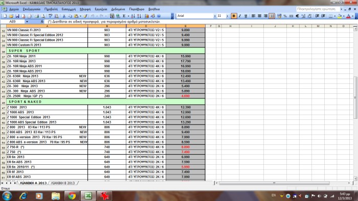 Nέος τιμοκατάλογος KAWASAKI 2013.
