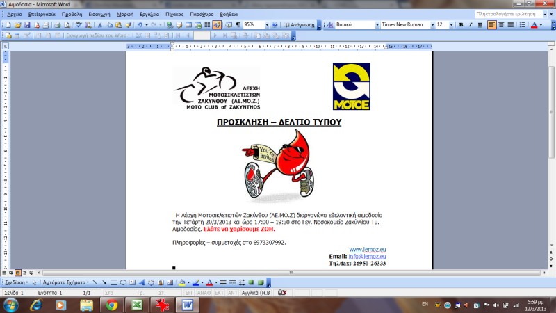 Εθελοντική αιμοδοσία από την ΛΕΜΟΖ
